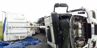 Impresionante: Un tornado derribó cuatro camionetas juntas en Azul